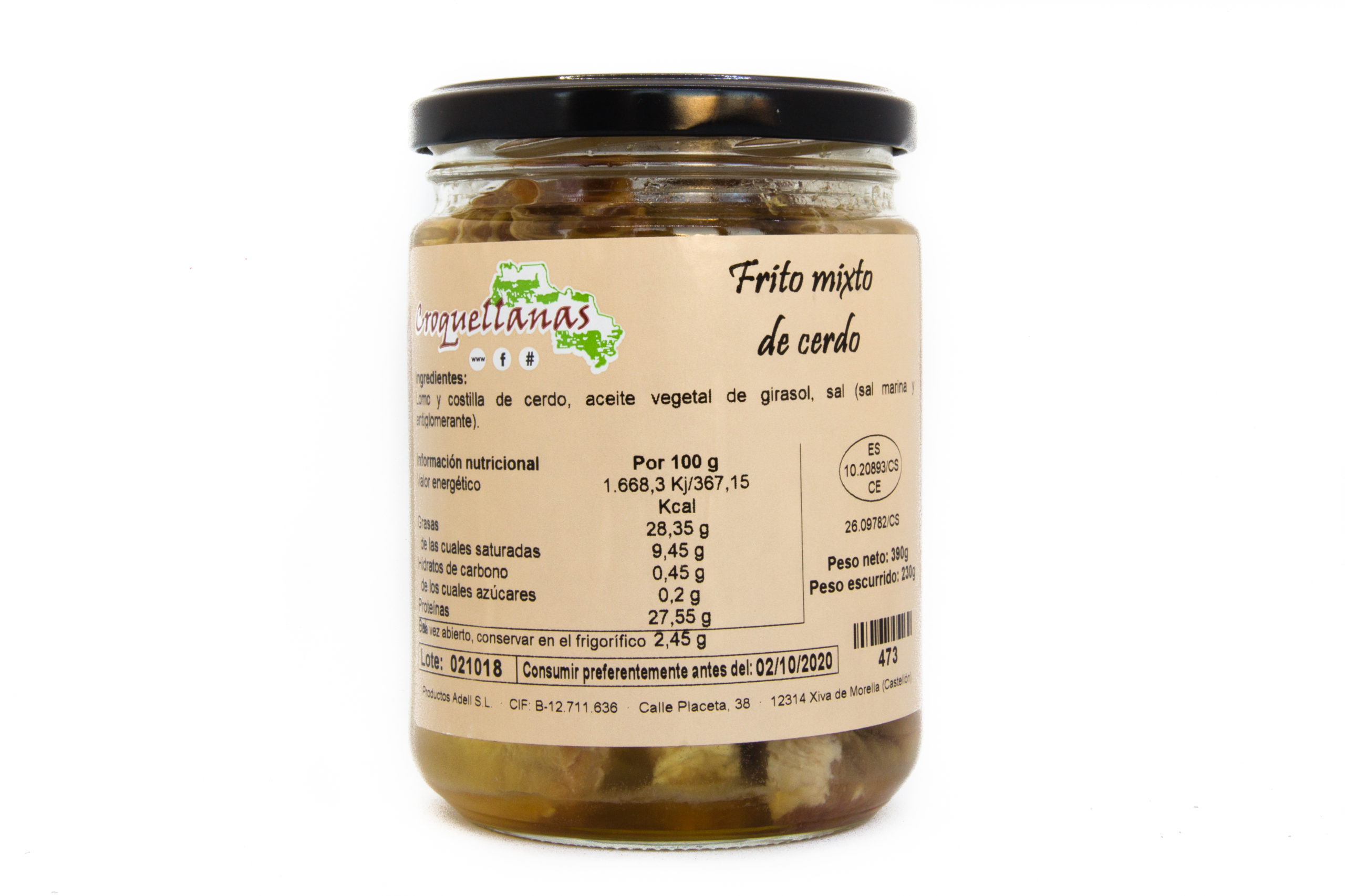 Peso neto/ Peso escurrido: 390g. / 230g.
